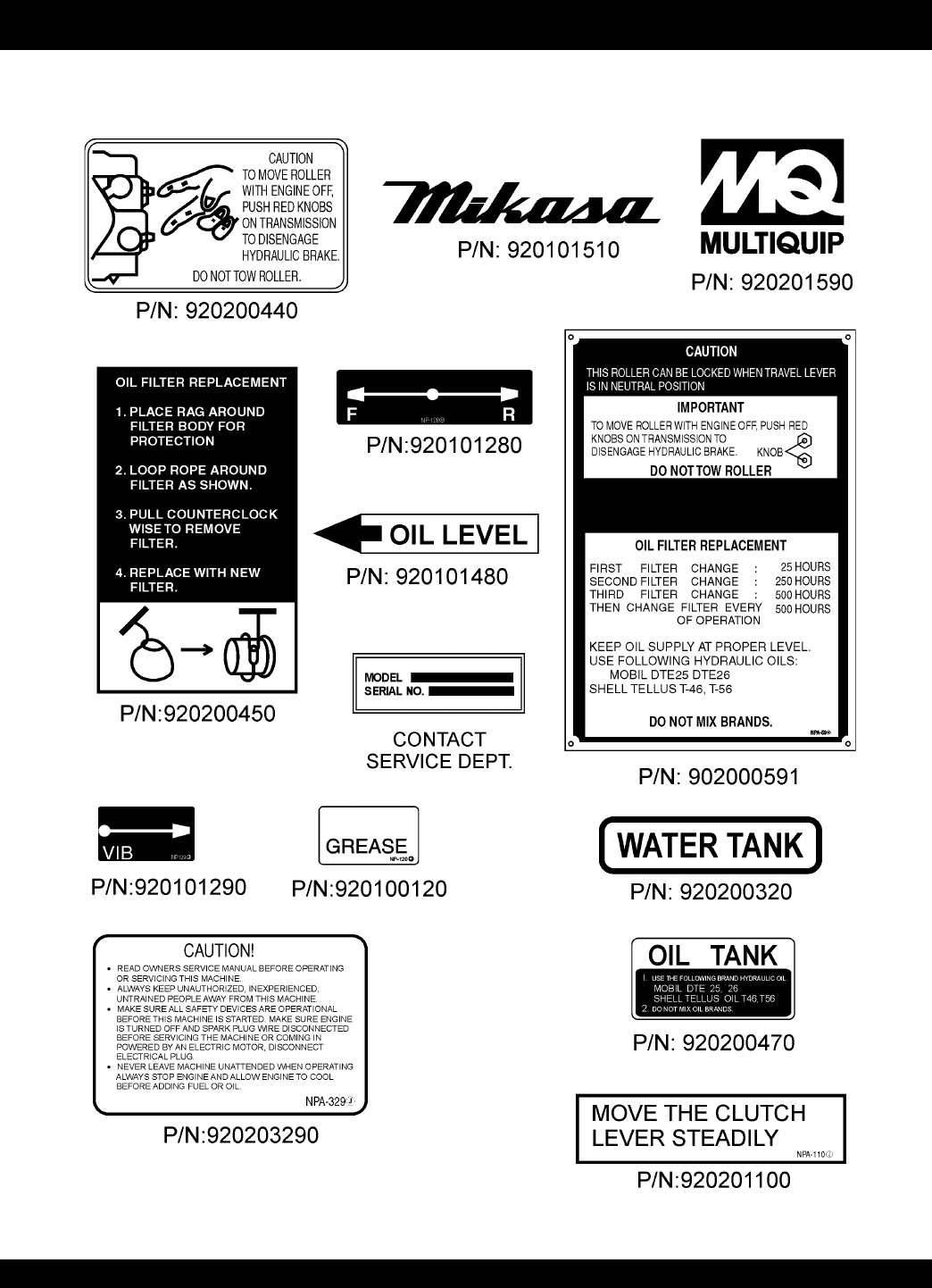 damaged or unreadable, contact the Multiquip Parts Department for a replacement set.