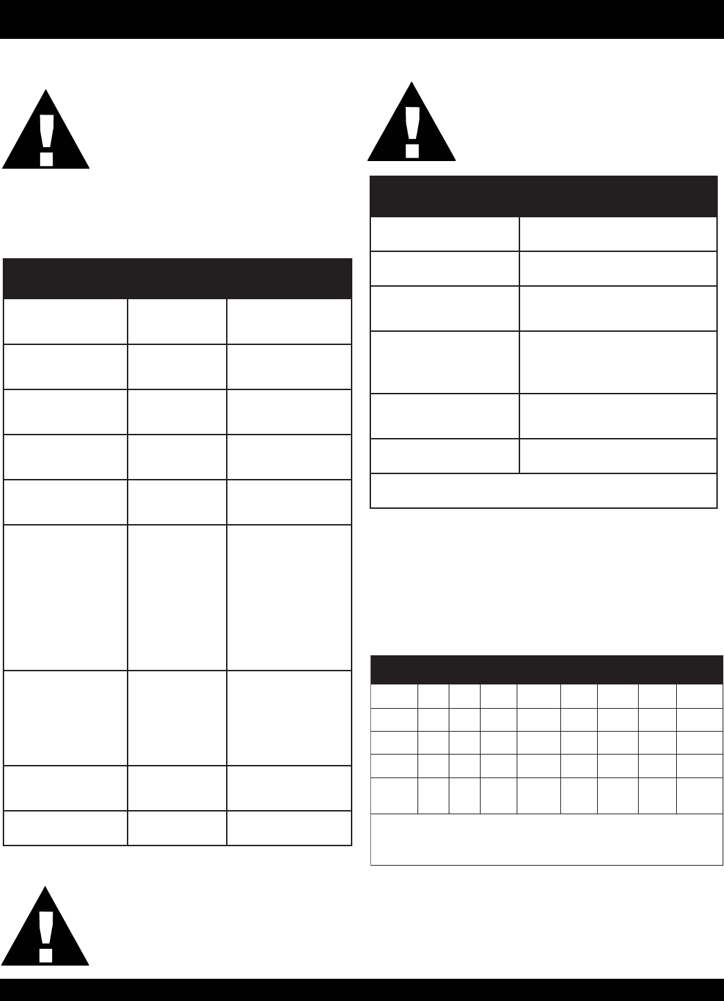 INSPECTION AND MAINTENANCE SERVICE TABLES