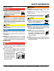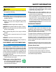 Safety Information FueL saFeTy baTTeRy saFeTy (eLeCTRiC sTaRT OnLy) dangeR dangeR dO nOT add fuel to equipment if it is placed inside truck bed with plastic liner. Possibility exists of explosion or fire due to static electricity. FUEL dO nOT drop the battery. There is a possibility that the battery will explode. dO nOT expose the battery to open flames, sparks, cigarettes, etc. The battery contains combustible gases and liquids.