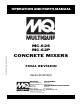 MC-62P/S CONCRETE MIXER — RULES FOR SAFE OPERATION DANGER: Failure to follow instructions in this manual may lead to serious injury or even death! This equipment is to be operated by trained and qualified personnel only! This equipment is for industrial use only. The following safety guidelines should always be used when operating the Multiquip MC-62P/MC-62S Concrete Mixers: GENERAL SAFETY ■ DO NOT operate or service this equipment before reading this entire manual.