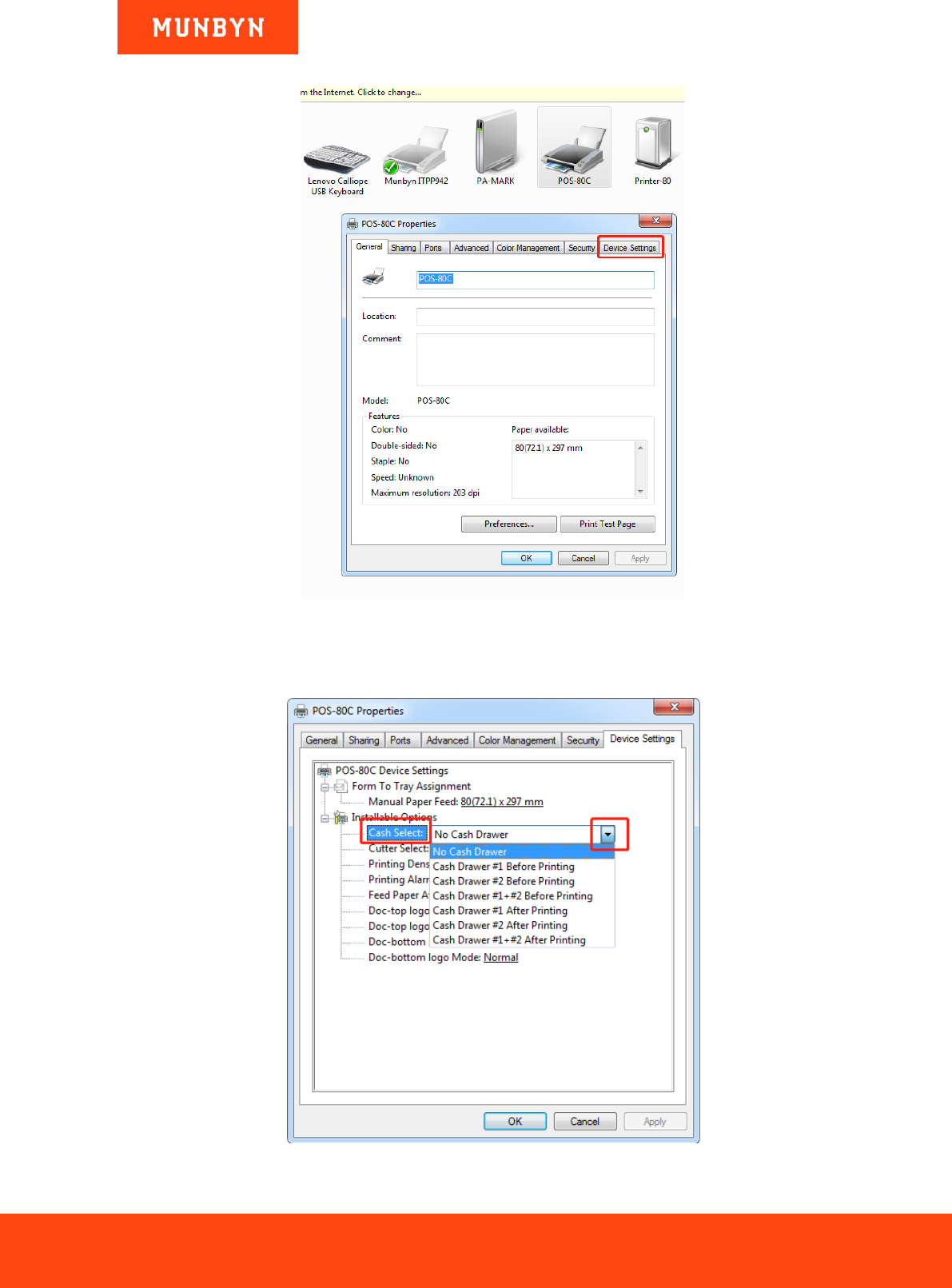 2) Click on the "Device Settings", enter POS-80C Device Settings.