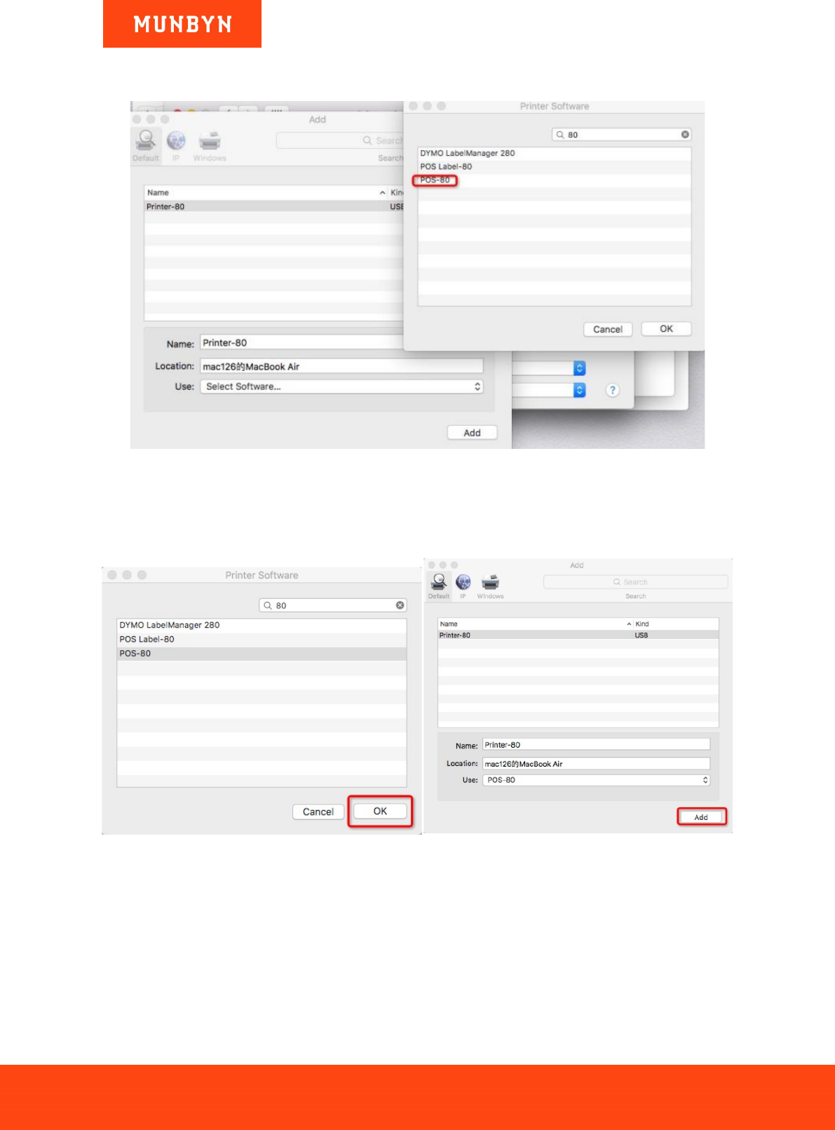 14) Click on the "OK" and "Add" to add this new printer(POS-80C).