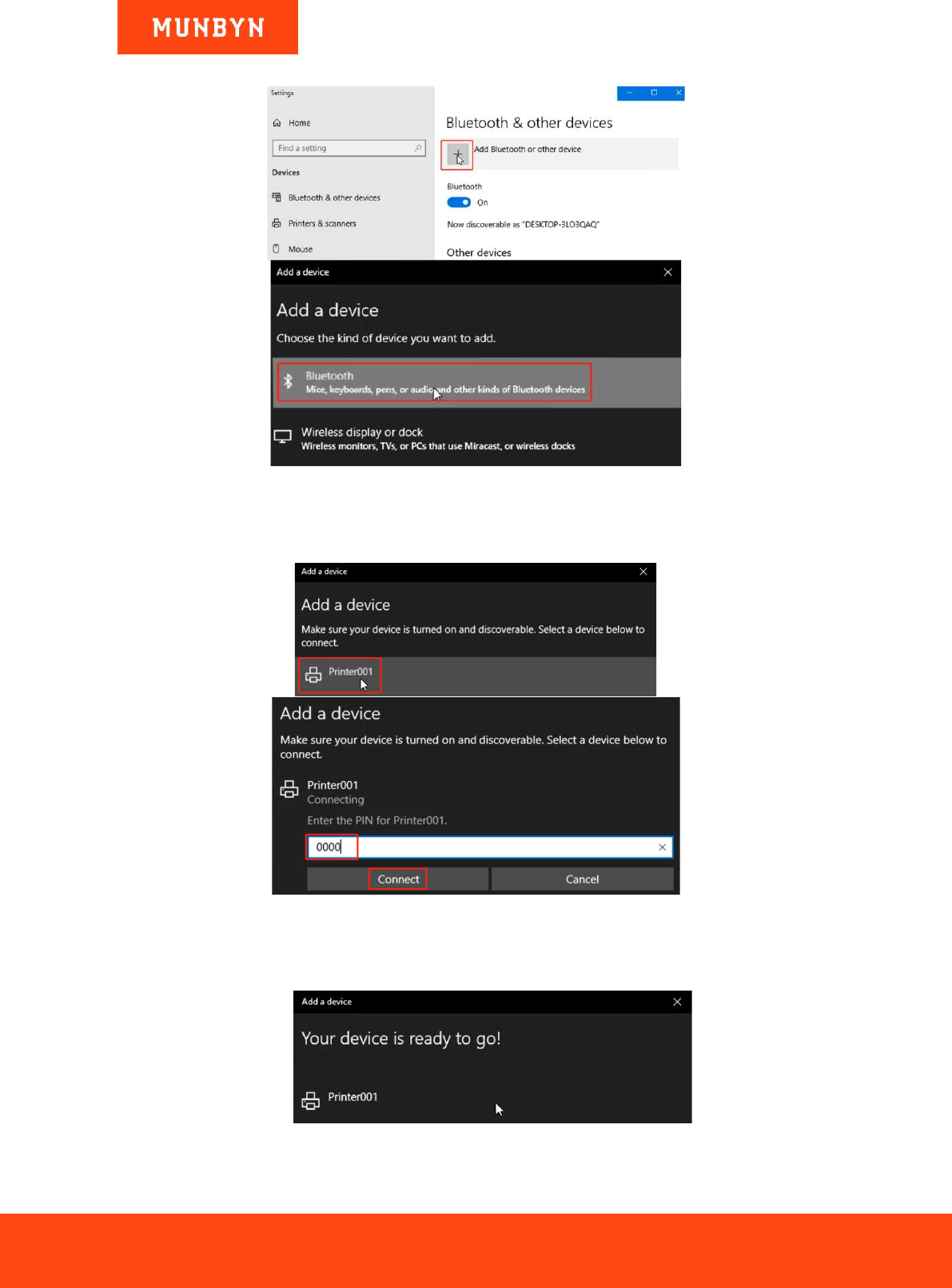 4) Choose "Printer001" and enter the PIN code "0000".