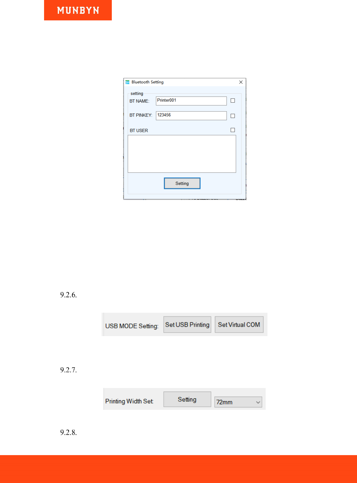 b) Set up the Password of the Bluetooth Printer (the Factory Default BT PINKEY is "123456")
