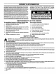 OWNER'S INFORMATION This instructionbookisfor severaldifferentmodels.The instructions are writtenfor a personwith somemechanicalability.Like mostservicebooks,notallthestepsare described.Stepson howtoloosenor tightenfastenersarestepsanyonecanfollowwith somemechanical ability.Read and followtheseinstructions beforeyou usethe unit. chased in an assembled condition. On assembled units, it is the responsibility of the owner to make sure the unit is correctly assembled.