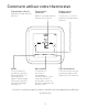 Comment utiliser votre thermostat Température désirée Affiche la température désirée. Température intérieure Réglage de la température Affiche la température intérieure actuelle. Touchez + ou - pour régler la température désirée. PM Mode Fan Heat Auto Mode Menu Fan Mode Menu Fan (Ventilateur) Sélectionnez le mode de système Auto/Heat/Cool/ Off/EM Heat (Auto/Chauffage/ Refroidissement/ Arrêt/Chauffage d’urgence).