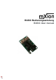 CV-Tabelle S = Standard, A = Analogbetrieb nutzbar CV 1 7 7 Beschreibung Lokadresse Softwareversion 2 Resetbereiche wählbar 8 7+8 Herstellerkennung Reg8 = CV-Adresse Reg7 = CV-Wert 11 15 16 17 18 19 Analogwechsel Programmiersperre (Schlüssel) Programmiersperre (Schloss) Lange Lokadresse (hoch) Lange Lokadresse (tief) Multitraktionsadresse 29 NMRA Konfiguration Bit Wert 1 2 2 4 5 32 7 128 Taktteiler Taktsimulationskorrektur mXion Konfiguration Bit Wert 0 1 1 2 2 4 3 8 44 48 49 14 S 3 – A Bereich