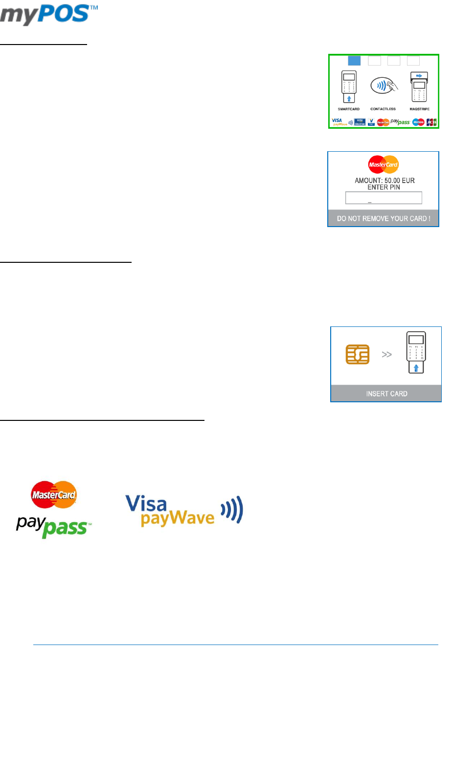 hand you such cards. Your myPOS device can accept two types of contactless cards - PayPass and payWave,