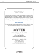 Mytek Liberty DAC II Owner's Manual Ver. 1.0 © Mytek Audio 2022 The Liberty DAC II firmware can be easily updated via Mytek Firmware Uploader app. As the firmware is updated, Mytek will be posting new firmware releases in the support/download section on Mytek website. Firmware may alter details of Mytek operation and consequently there will be periodic updates to this manual. For news, driver updates, technical support, tips and further product information please visit our website: www.mytek.