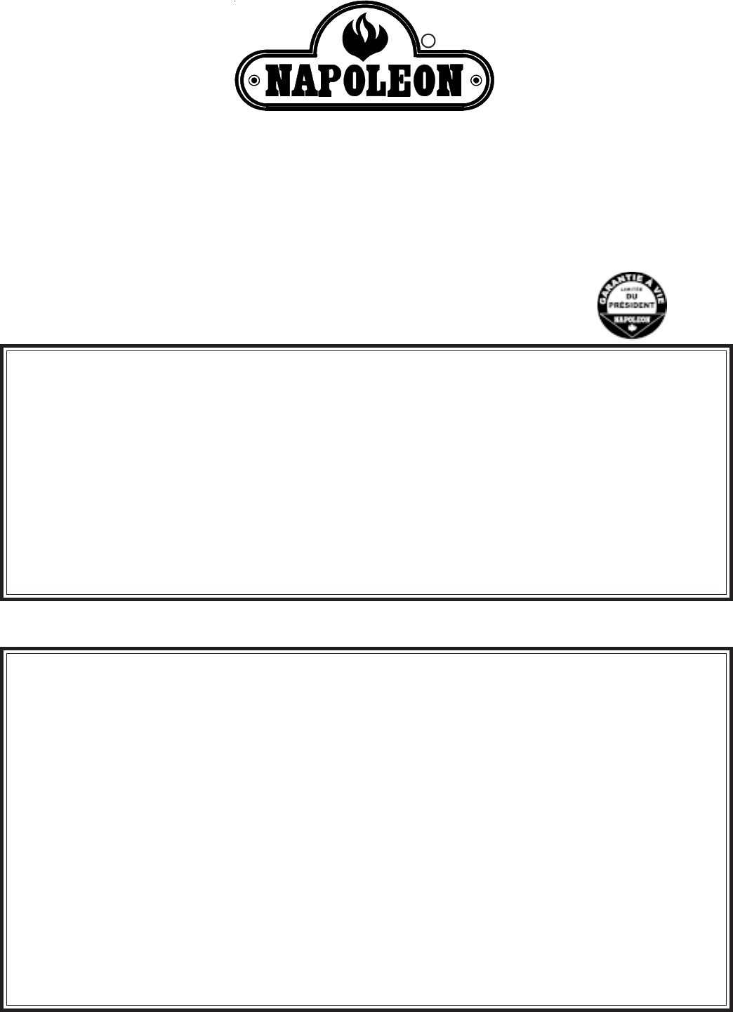 retournée dans les quatorze jours pour enregistrer la garantie ou enregistrer en ligne a : www.napoleongrills.com.
