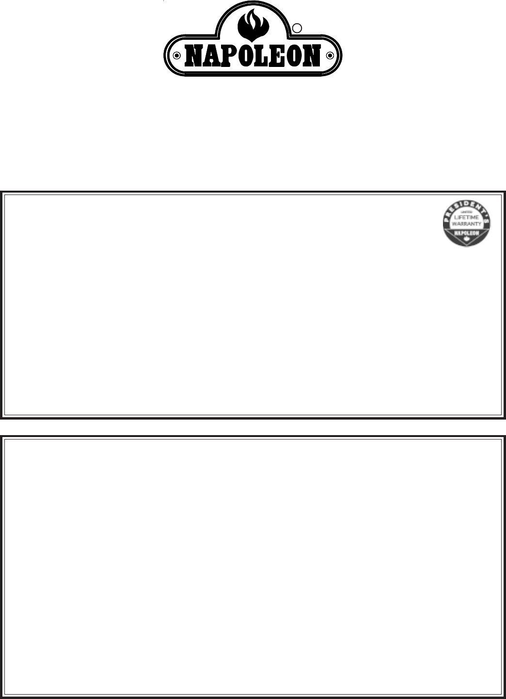 NAPOLEON neither assumes, nor authorizes any third party to assume, on its behalf, any other liabilities with respect to the sale of this product. NAPOLEON will