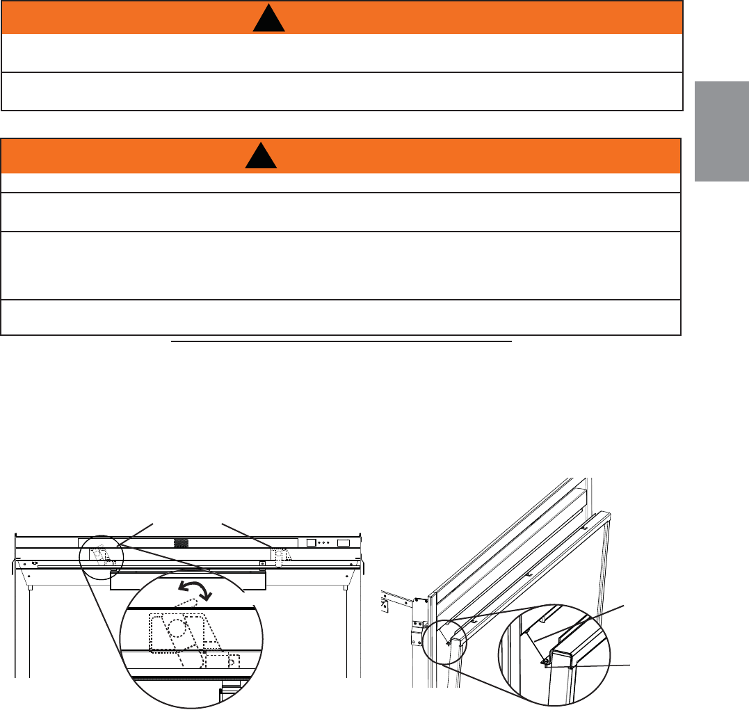 est retenue légèrement par le fi l de sécurité. NOTE: Poussant sur la porte, va faire basculer