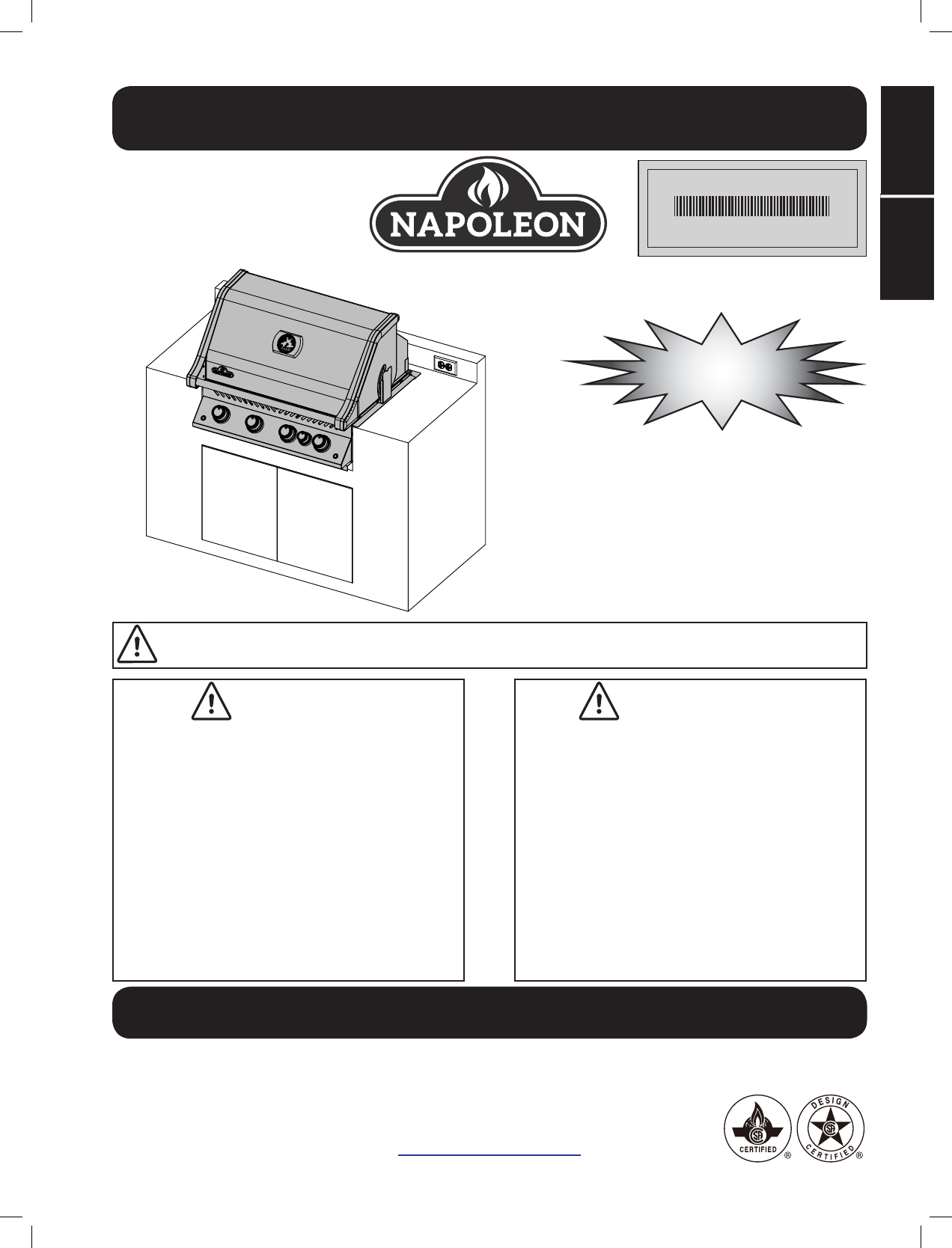 EN Napoleon President’s Limited Lifetime Warranty NAPOLEON products are designed with superior components and materials, and are assembled by trained craftsmen who take great pride in their work. The burner and valve assembly are leak tested and test-fired at a quality test station. This grill has been thoroughly inspected by a qualified technician before packaging and shipping to ensure that you, the customer, receive the quality product you expect from NAPOLEON.