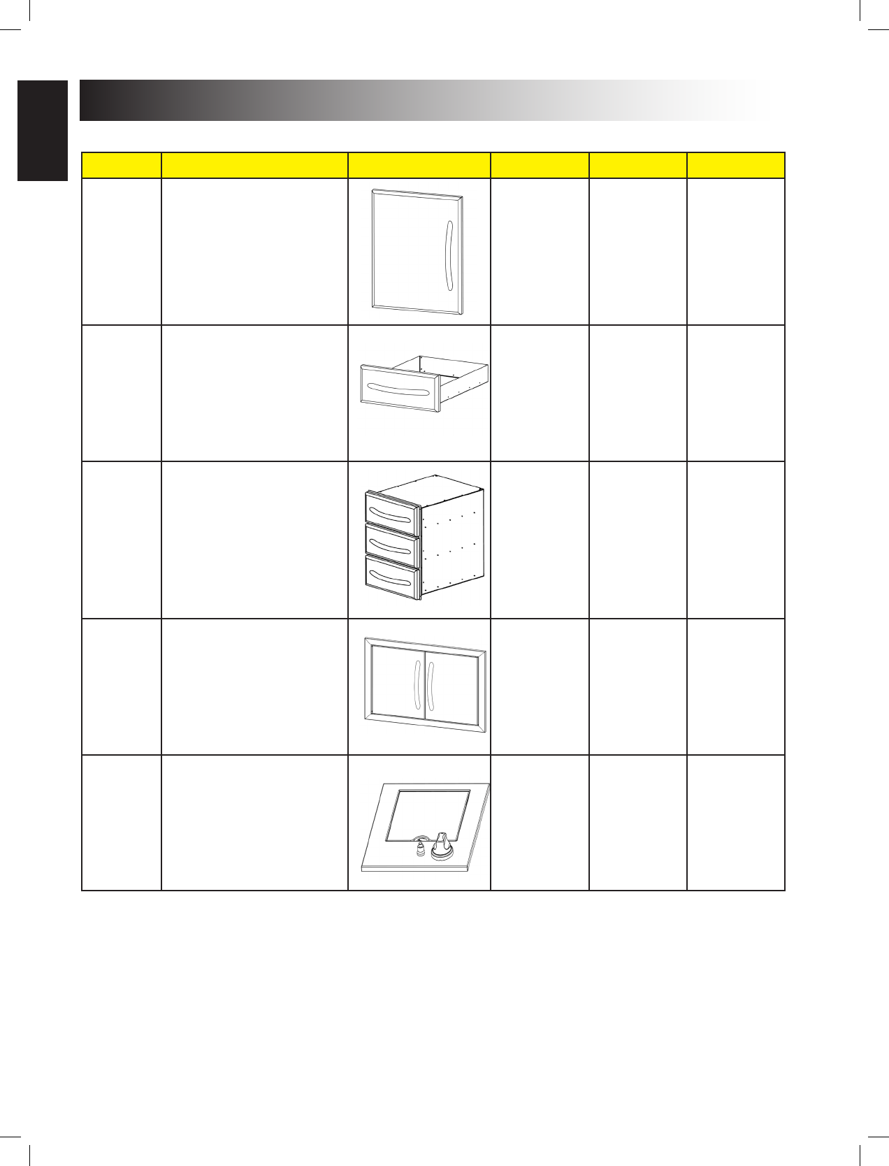 BUILT-IN ACCESSORY OPENING DIMENSIONS