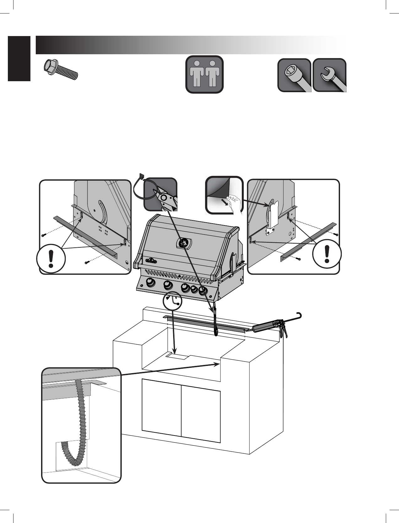 This grill is designed for masonry, NON-COMBUSTIBLE enclosures only, and must be installed and serviced by a