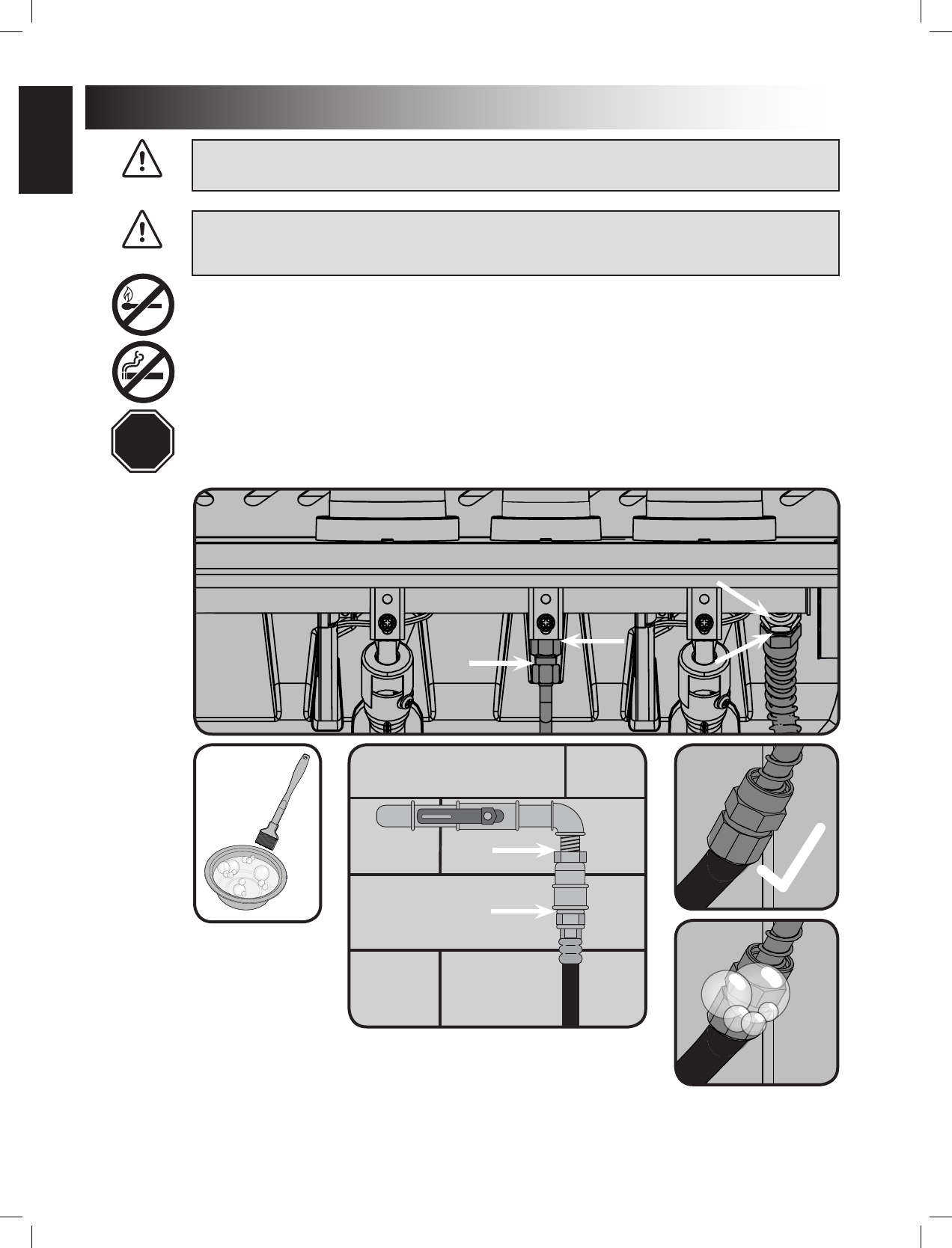 WARNING! Never use an open ame to check for gas leaks. Be certain no sparks or open ames