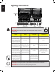 Lighting Instructions EN Smoker Burner Igniter Light Left Tube Burner ! Left Warming Right Infra Burner Infra Red Red Burner Burner Off Position WARNING! Open lid WARNING! Ensure all burner controls are in the off position. Slowly turn on the gas supply valve. Main Burner Lighting Smoker Burner Lighting Rear Burner Lighting (if equipped) Side Burner Lighting (if equipped) 1. Open grill lid. 1. Open grill lid. 1. Open grill lid. 1. Open burner cover. 2.