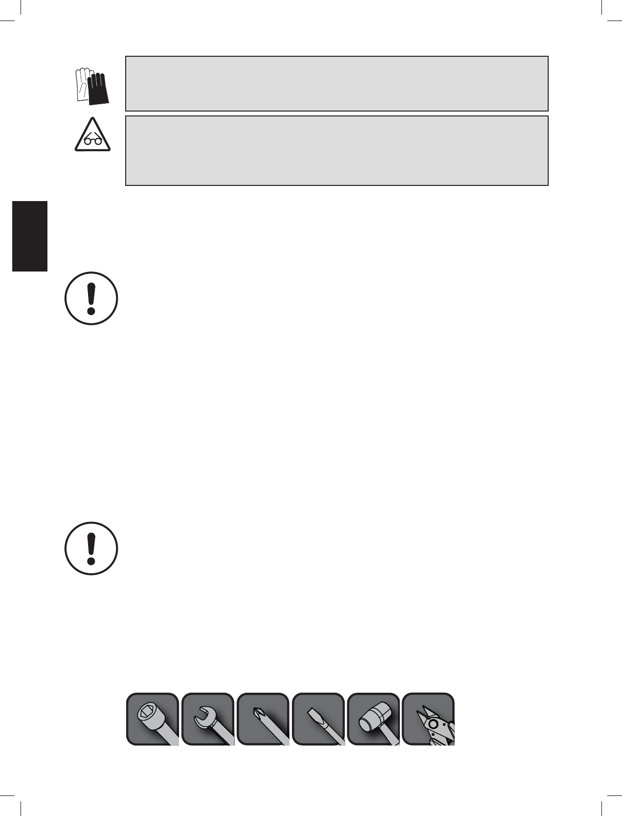 TOOLS REQUIRED FOR ASSEMBLY (tools not included)