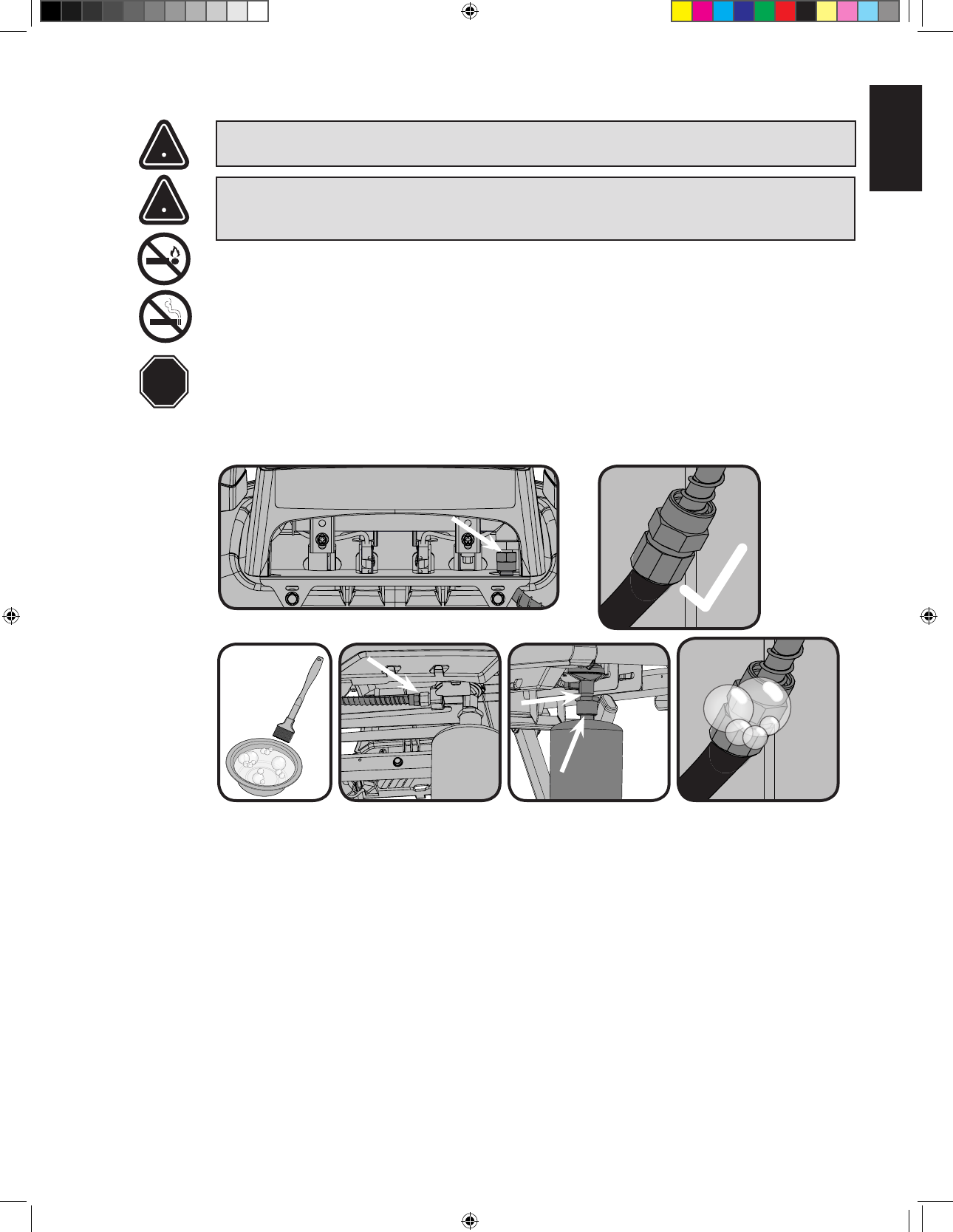 WARNING! Never use an open ame to check for gas leaks. Be certain no sparks or open ames