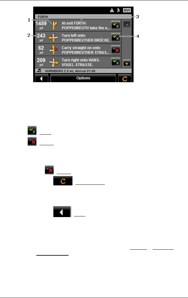 ► In the TURN-BY-TURN LIST window, tap on Options > Calculate