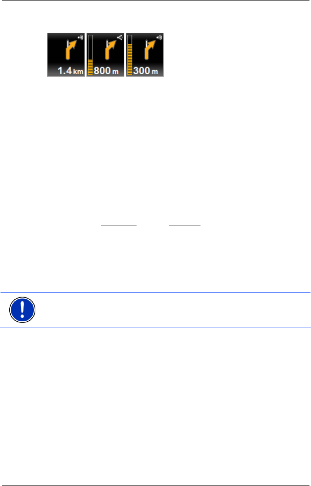 Wanneer u de kruising nadert, verschijnt behalve de afstandsinformatie