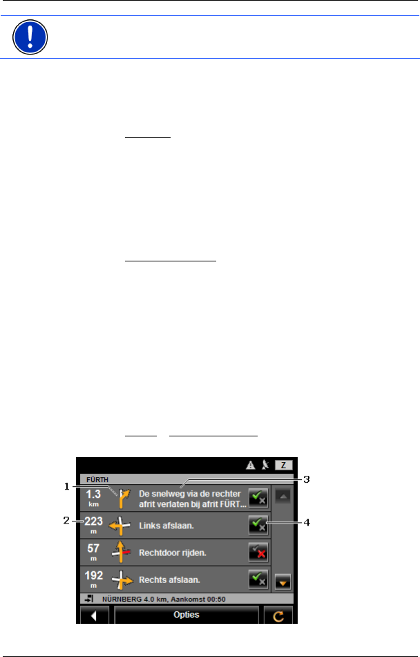 Voor de start van de navigatie of altijd tijdens de navigatie kunt u een