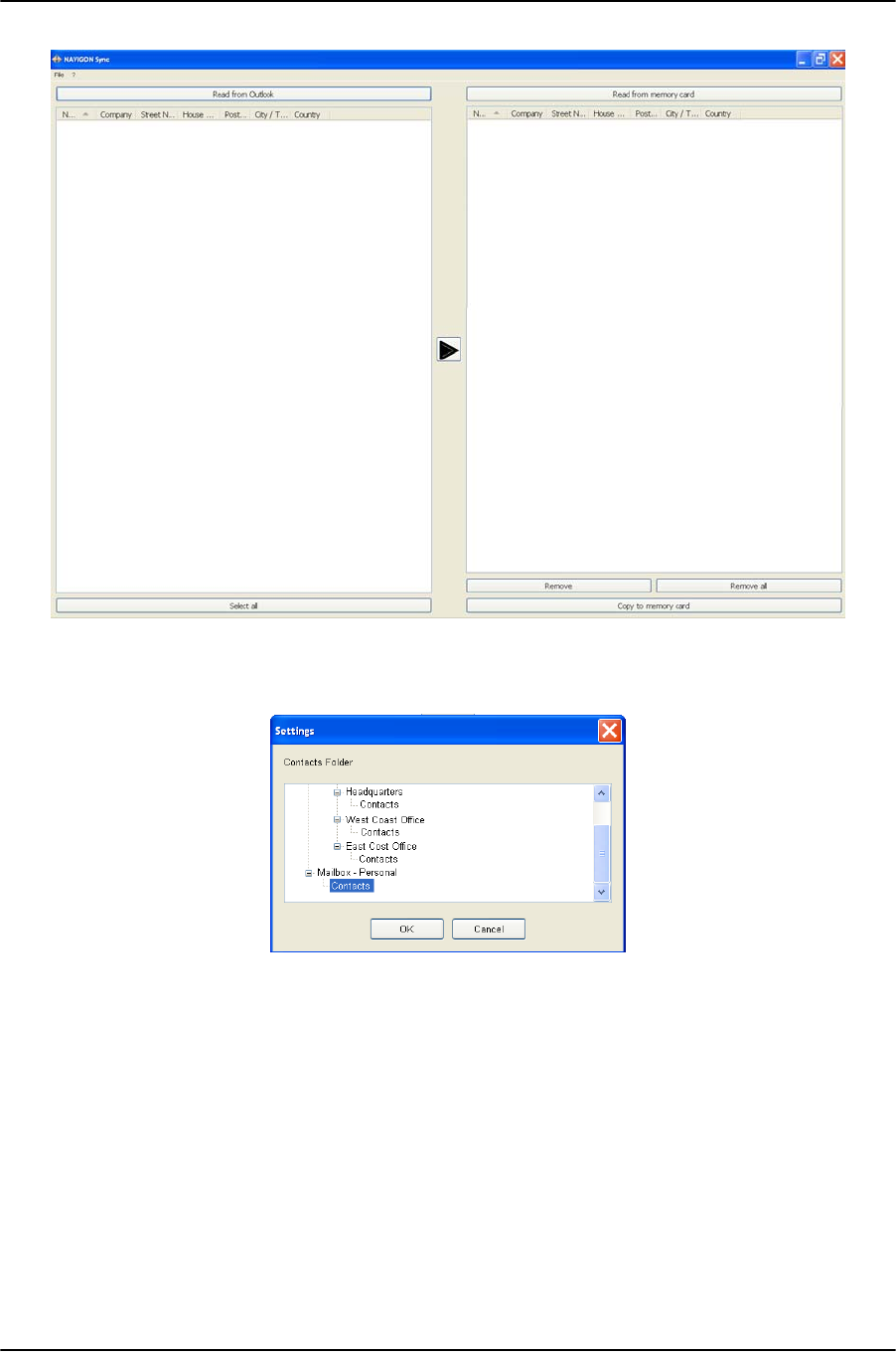 NAVIGON SYNC WINDOW, at the top of the left hand pane, click Read from