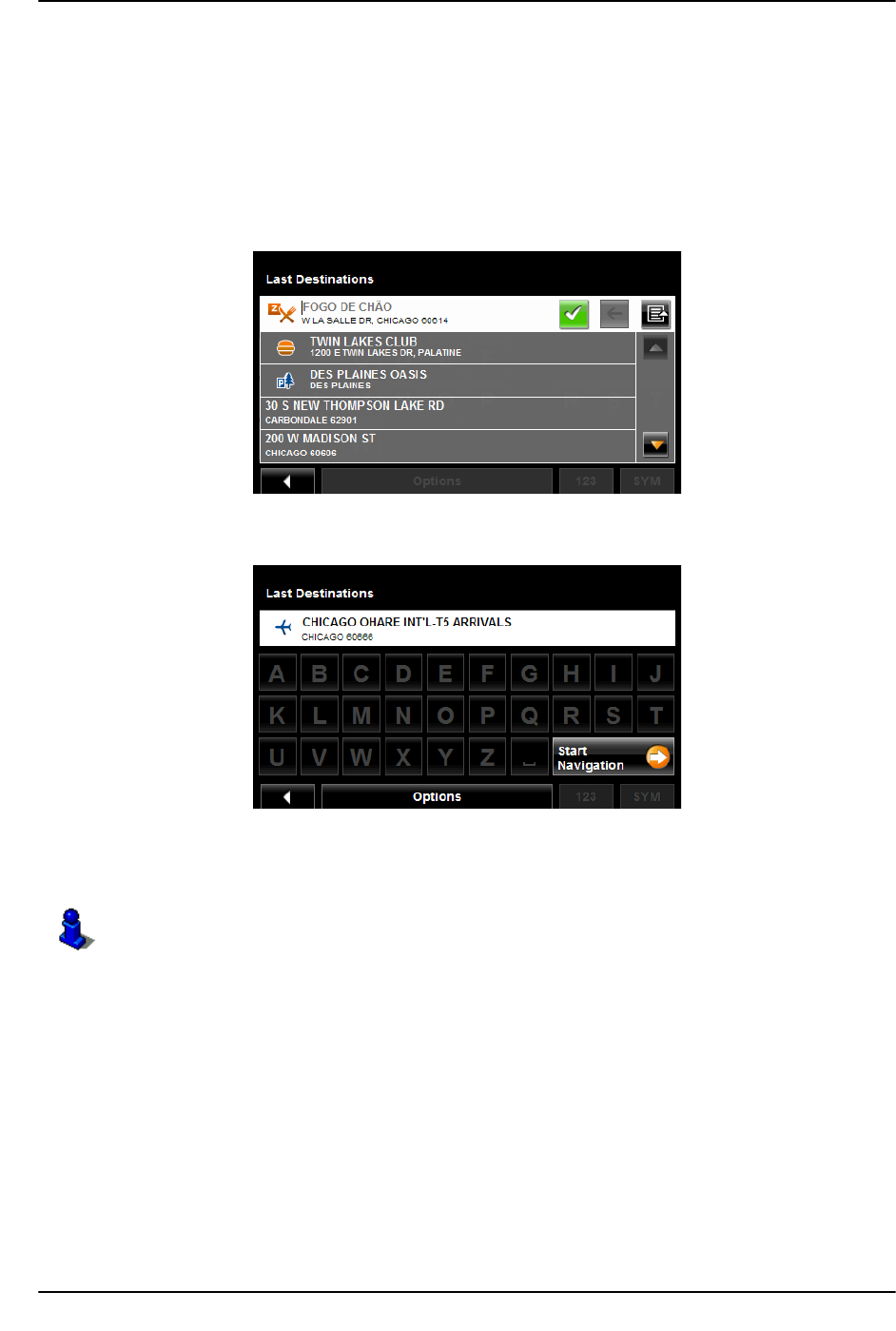 Your NAVIGON 8100T saves the last 30 destinations to which you have navigated in