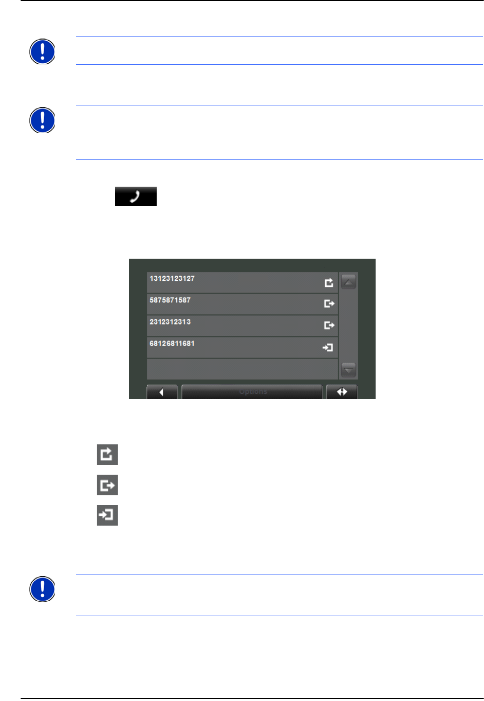 RECENT CALLS LIST is not saved on the navigation device. It is only avail-
