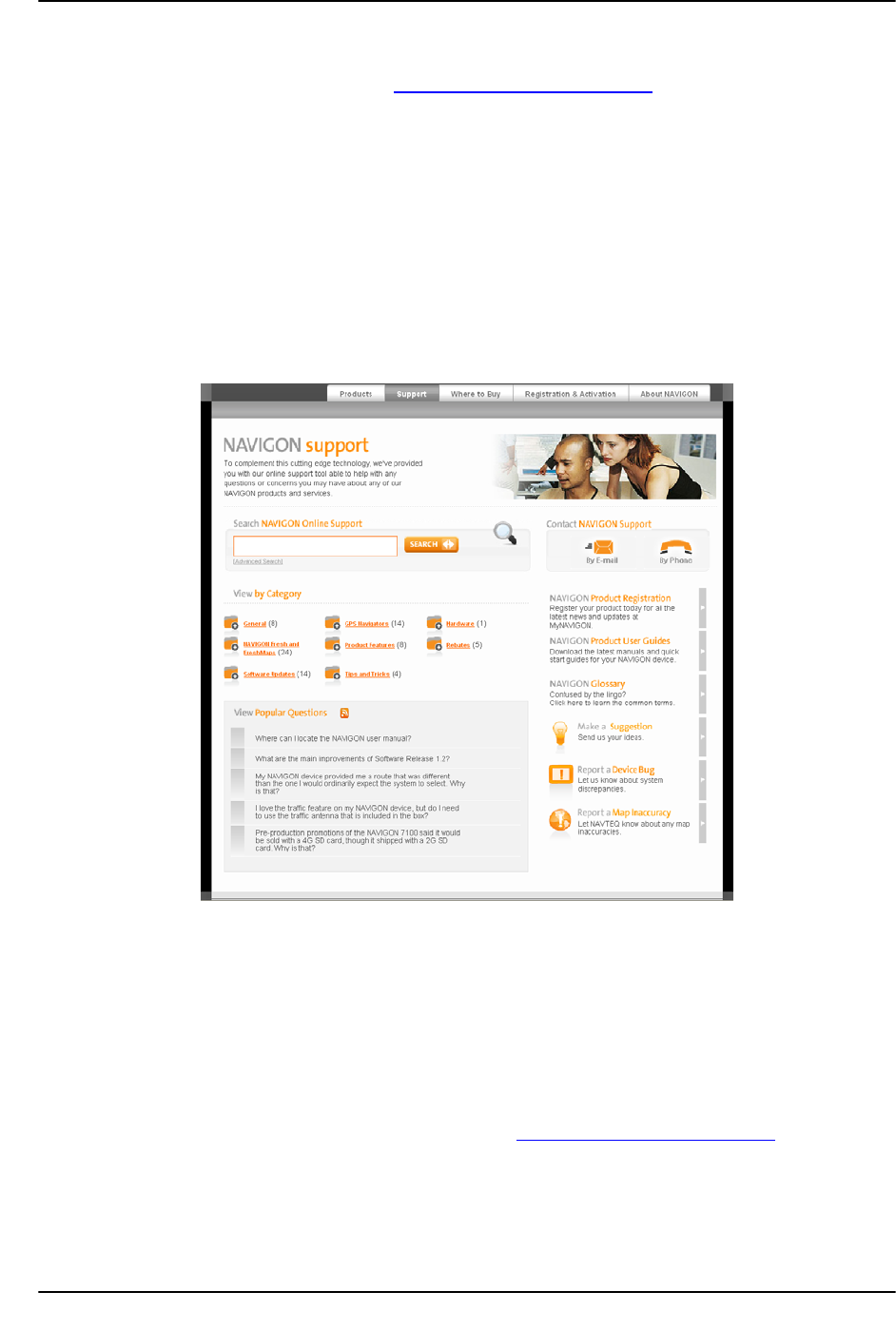 Visit the NAVIGON website (www.navigonusa.com/support/) to view our support page.