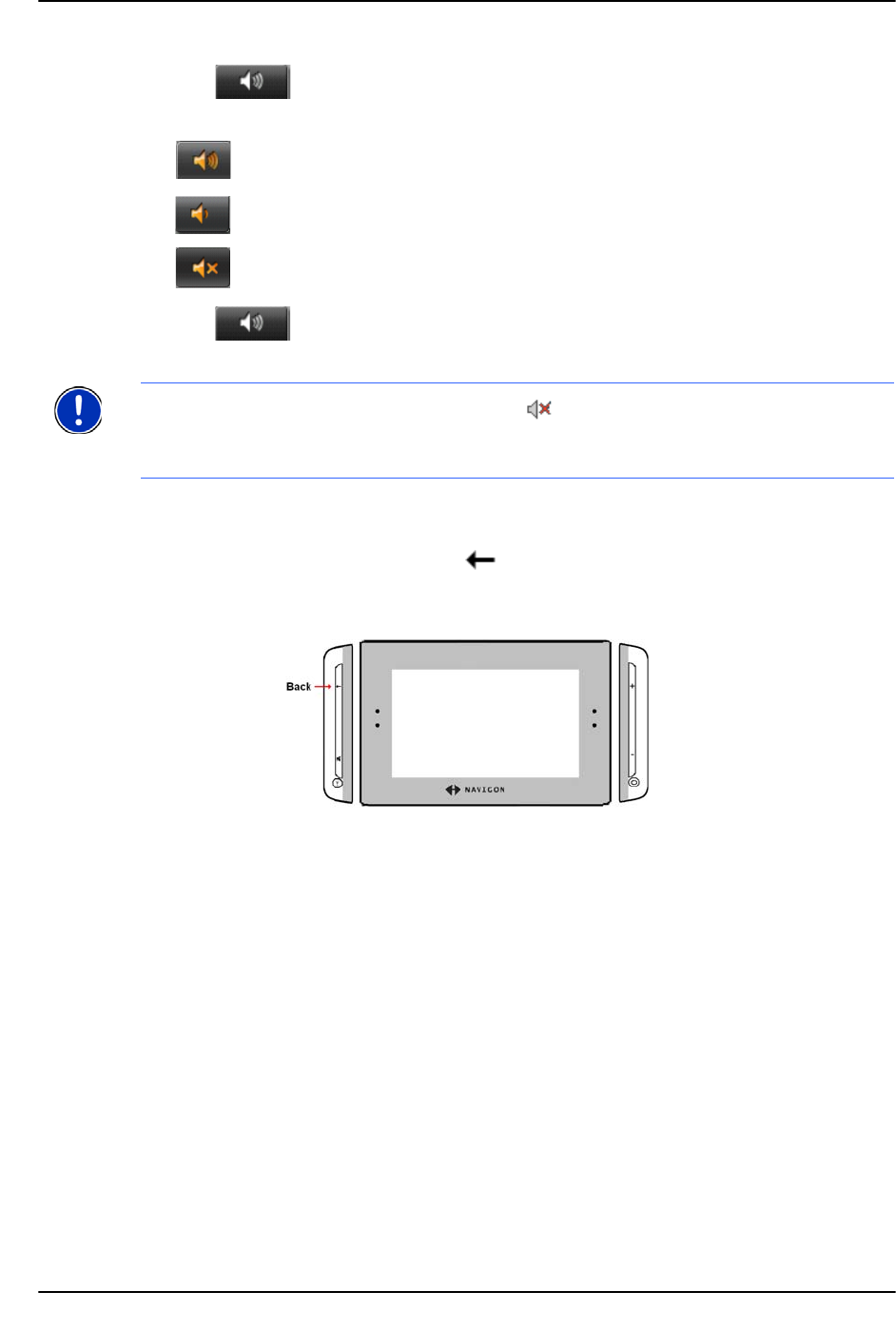 On the NAVIGON 8100T, press the (Back) hardware key to return to the previ-