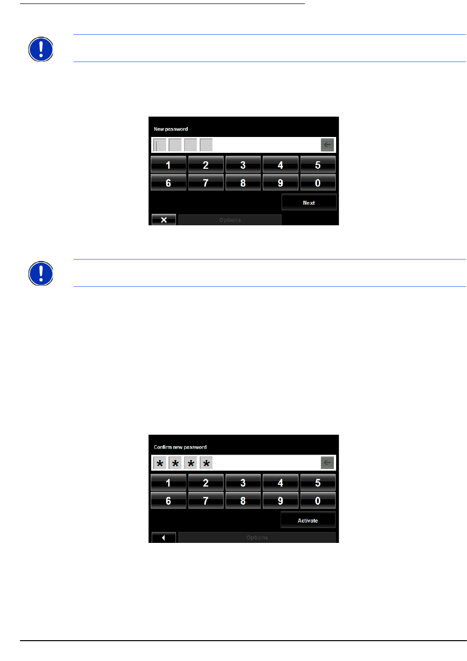 Password protection takes effect the next time the NAVIGON 8100T is switched