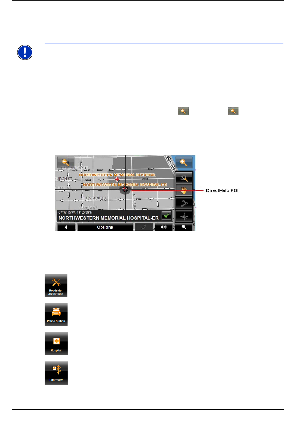 View your location on a map. Once a DirectHelp POI is selected, tapping this button