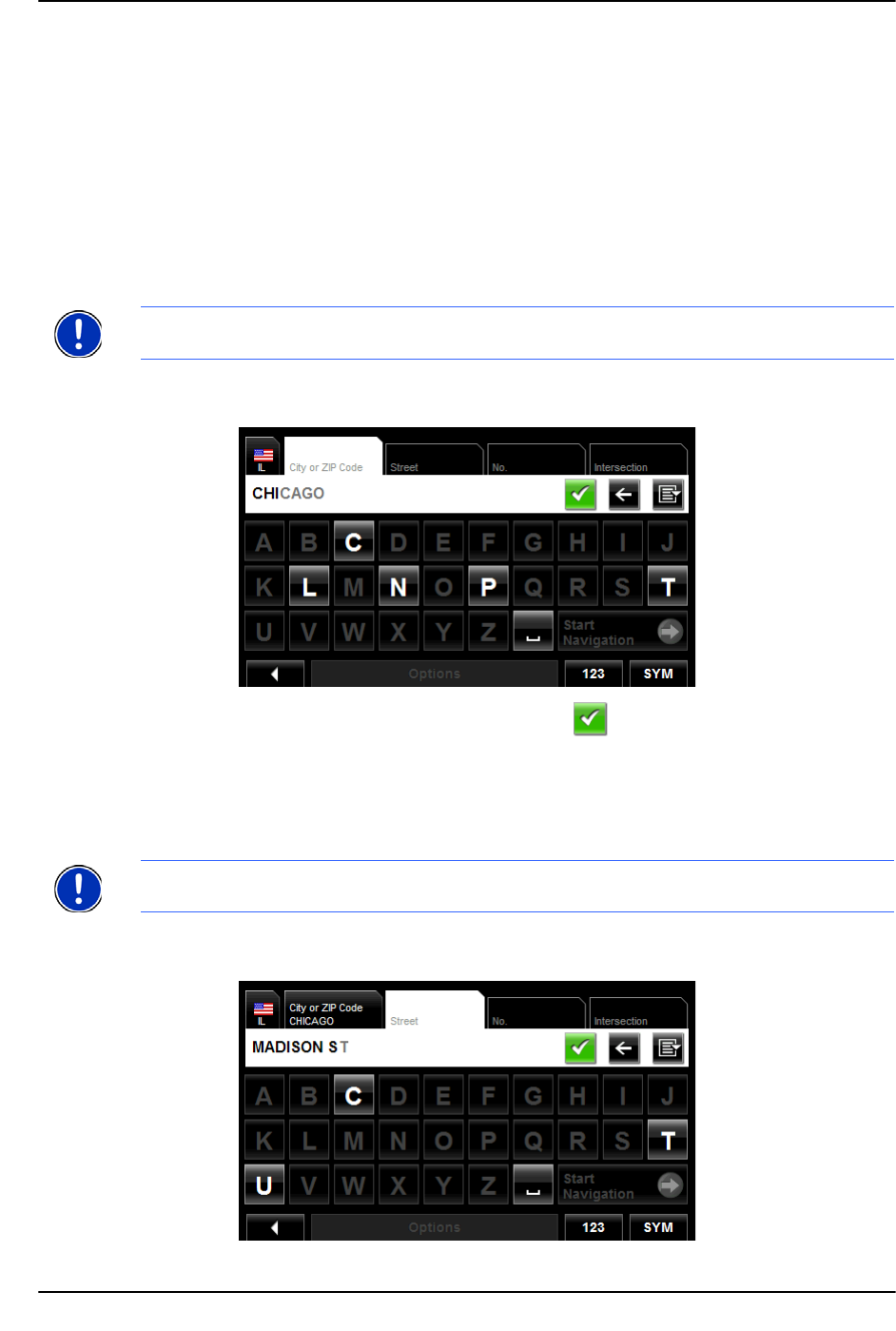 enter the name of a nearby cross street and the navigation system calculates a route to