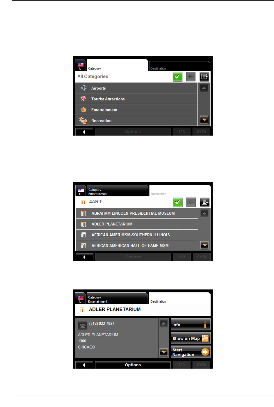 - Selecting a Point of Interest (POI) destination