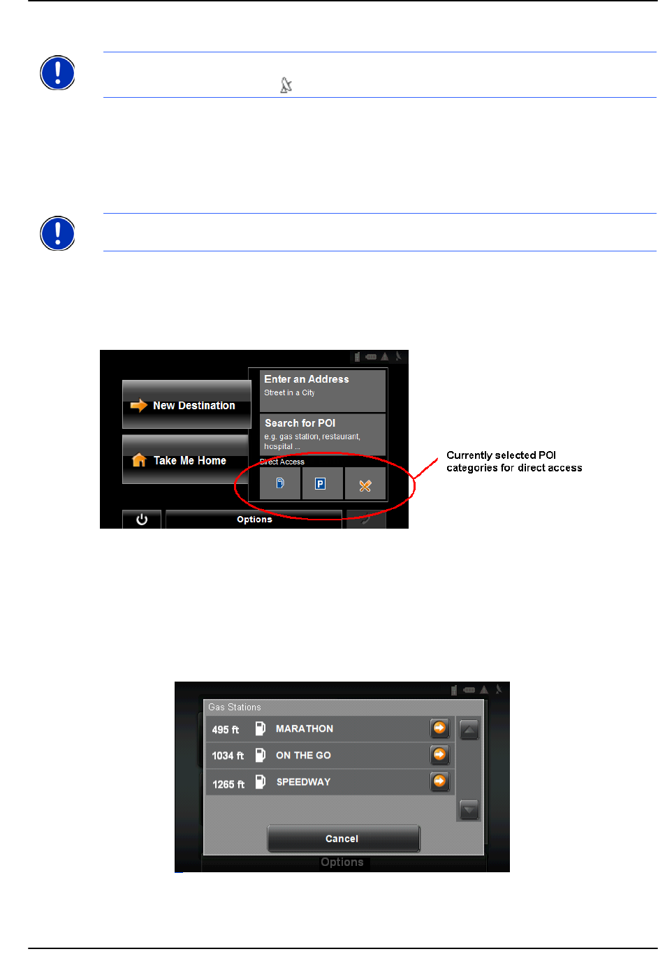Note: Sufficient GPS reception is required for Direct Access POIs. You can check GPS