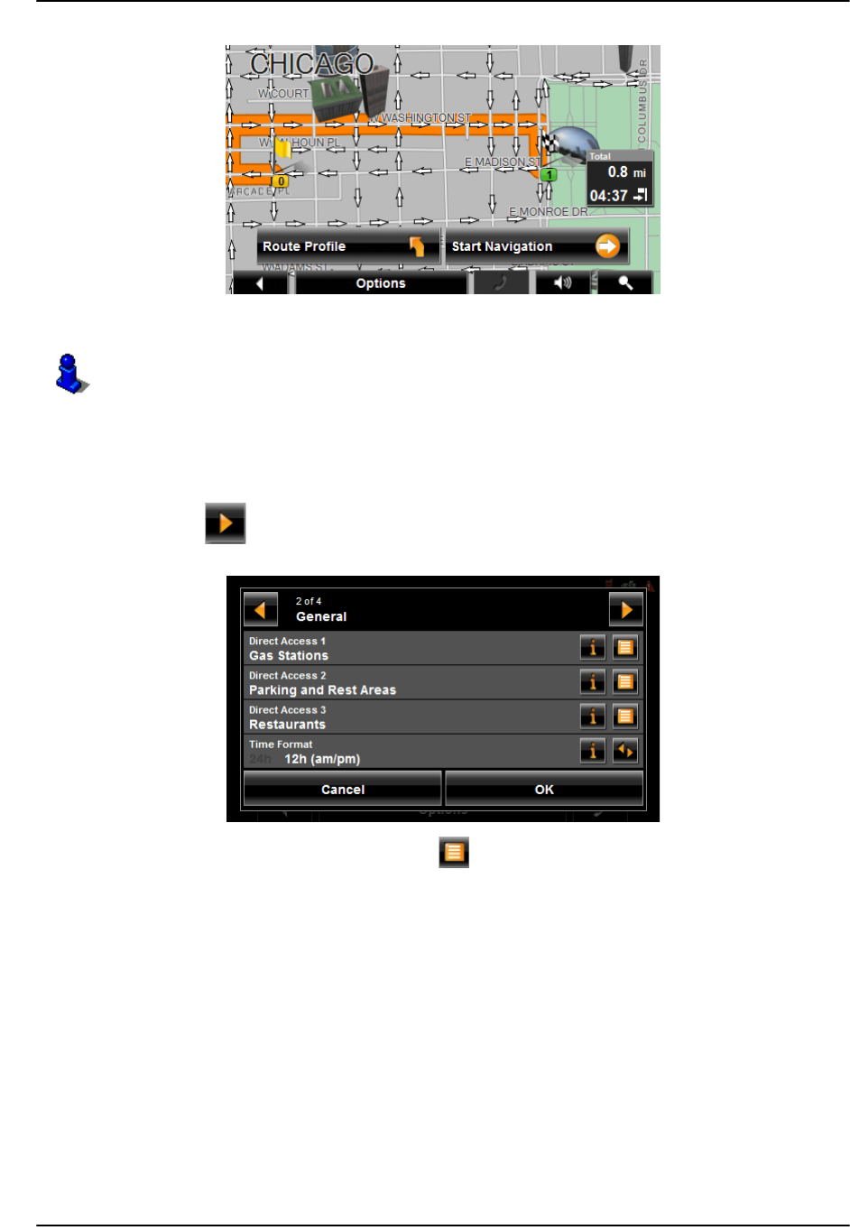 For more information, see “Starting navigation” on page 73.