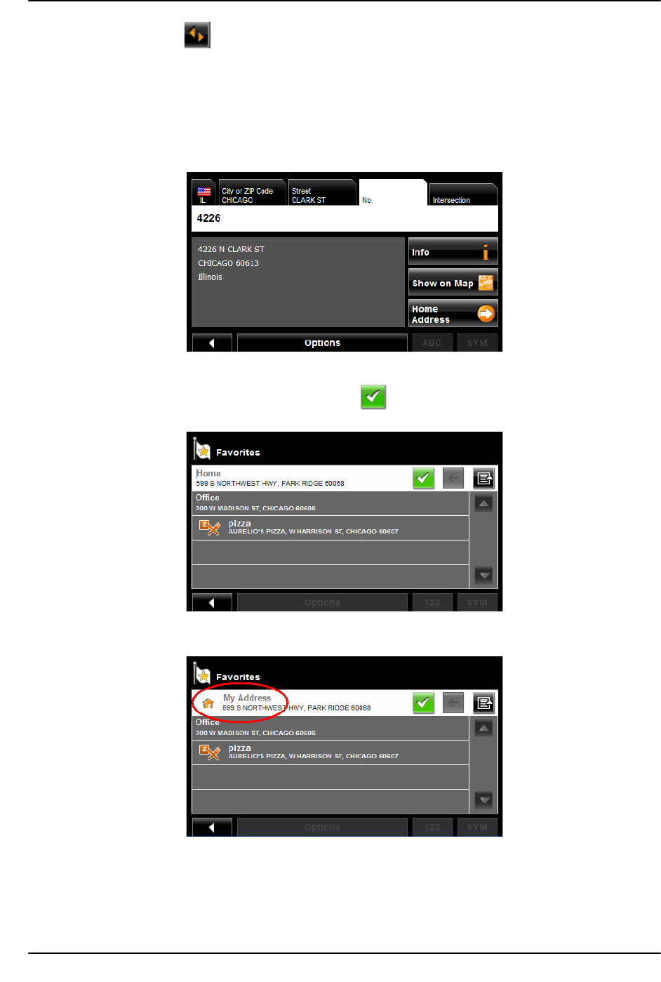 The selected destination is saved as your home address. On the FAVORITES LIST, a