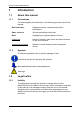 User’s manual NAVIGON 81xx 1 Introduction 1.1 About this manual 1.1.1 Conventions For better legibility and clarification, the following styles are used in this manual: Bold and italics: Registered names, company and product descriptions. SMALL CAPITALS: Window and dialogue box titles. Bold: Highlighting of important parts in the text. Underlined: Names of buttons, input boxes and other elements on the user interface.