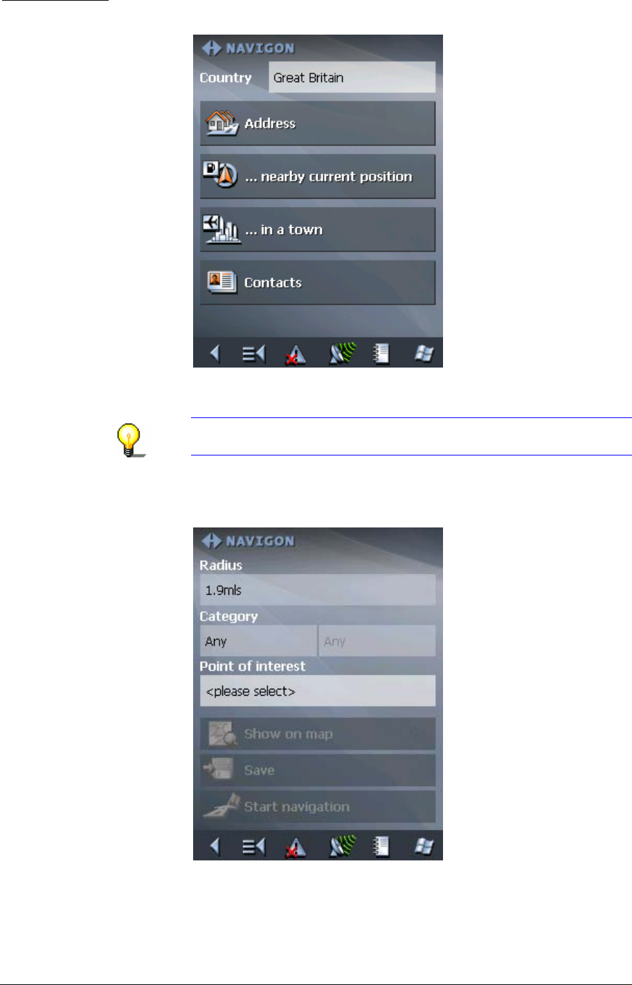 Standard mode 1. In the MAIN MENU, tap Navigation.