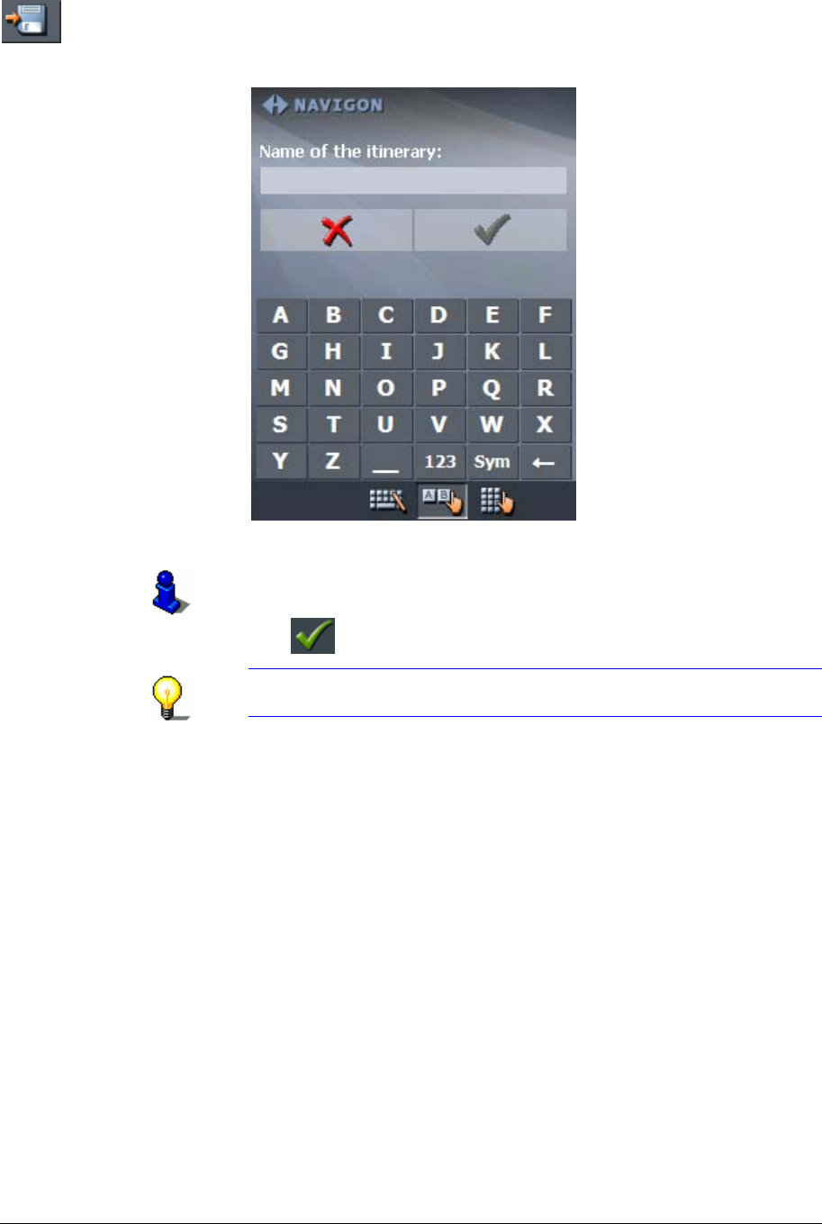 AME OF THE ITINERARY screen opens.