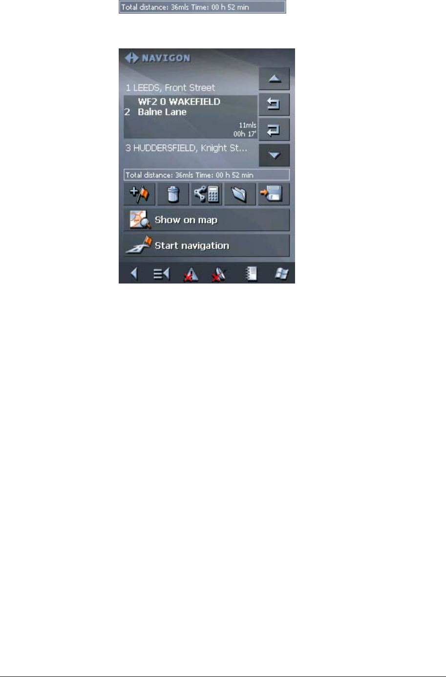 displayed below the route points list of the