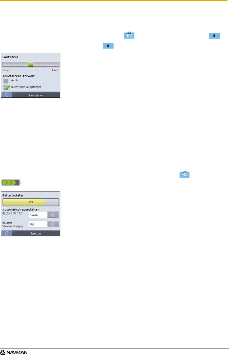Für weitere Informationen über das Regeln der Lautstärke Ihres Navmans siehe "Lautstärke" auf Seite 53.
