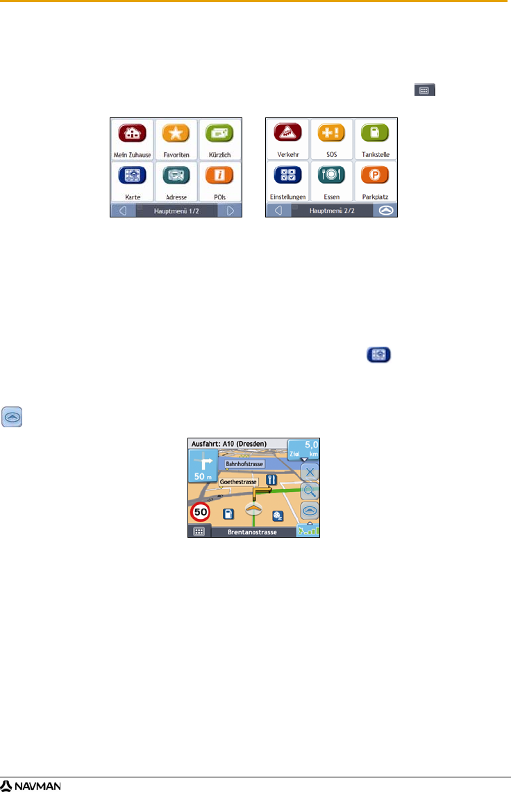 Hinweis: Die Hauptmenü-Bildschirme können sich, abhängig von Ihrem Navman-Modell, von den oben dargestellten unterscheiden.