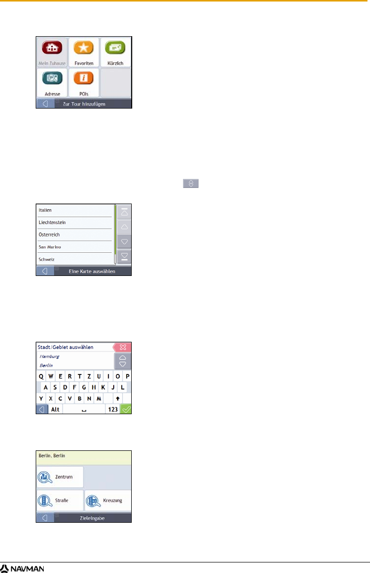 a) Tippen Sie auf dem Bildschirm Zieleingabe auf Stadt/Gebiet.