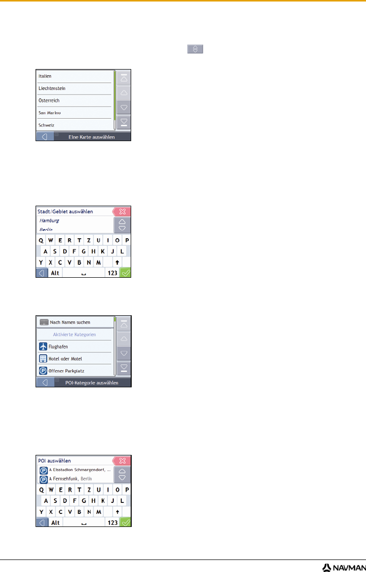 Hinweis: Wenn Sie nur die Landkarte eines Landes installiert und ausgewählt haben, wird dieses Land standardmäßig als Fahrtziel