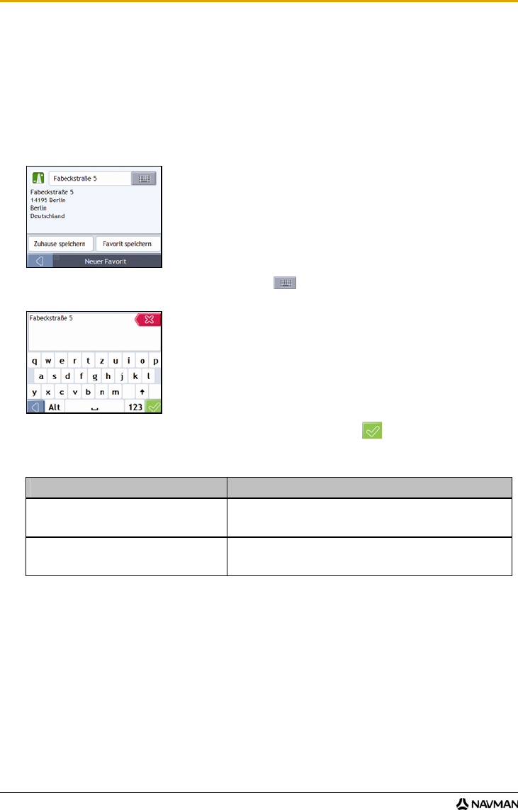 Sie können maximal 200 Fahrtziele als Favoriten und eines als Mein Zuhause speichern.