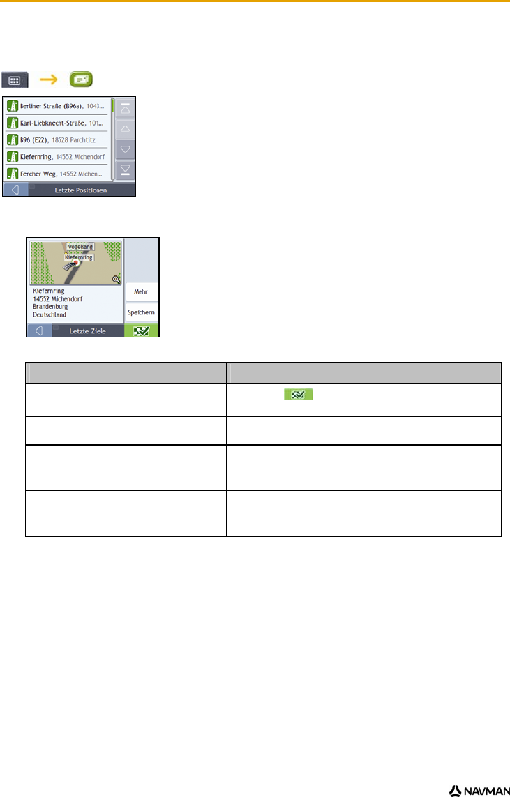 Um die Navigation zu vereinfachen, speichert Ihr Navman automatisch alle Ihre Ausgangspositionen und Fahrtziele