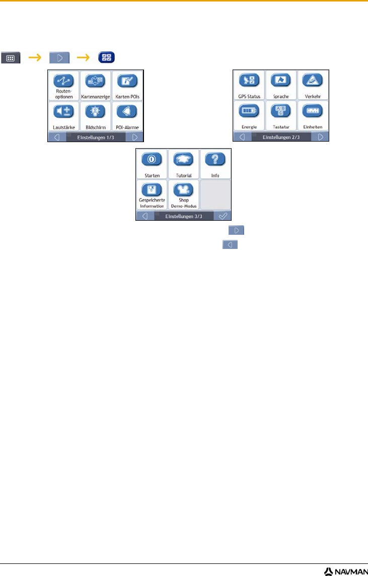 Um zu den Einstellungen-Bildschirmen zu gelangen, tippen Sie auf