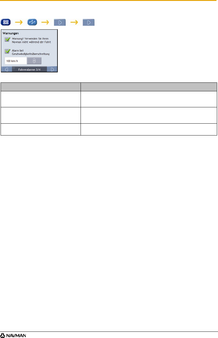 aktivieren Sie das Kontrollkästchen Warnung! Verwenden Sie Ihren Navman